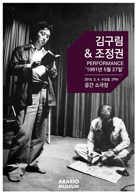 한국실험미술을 대표하는 김구림 작가와 과거 공간 잡지 편집장이었던 조정권 시인의 퍼포먼스가 그때 그 공간에서 재현됩니다.