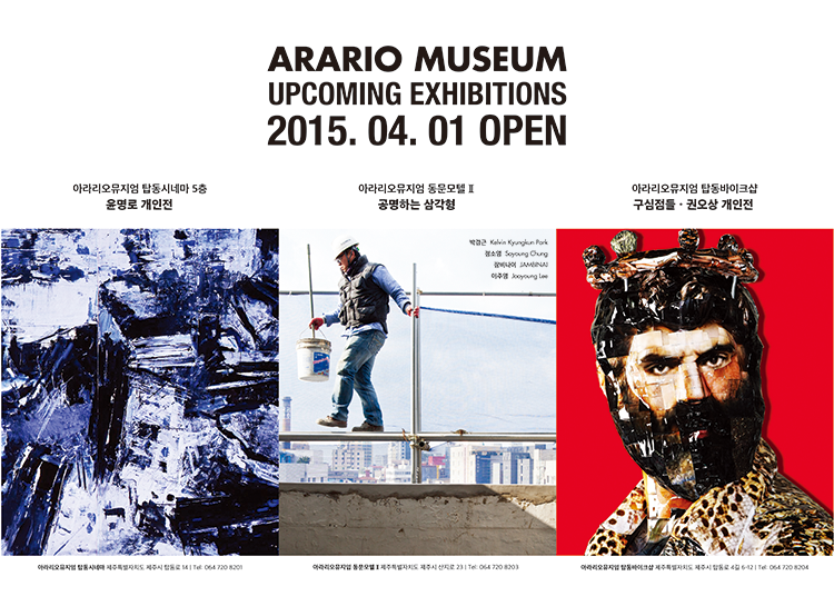 2015년 4월 1일, 아라리오뮤지엄 제주에서 3개의 새로운 전시가 아래와 같이 개최됩니다: