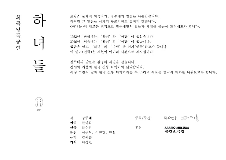 2016년 서울에는 '하녀'와 '마담'이 없음을 알고 낭독해 보고자합니다.