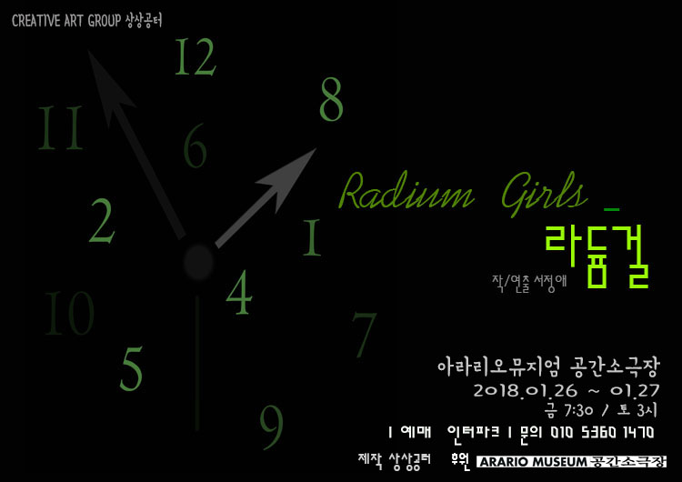 극단 상상공터는 이와 같은 사회적 이슈를 라듐걸을 통해 움직임과 이미지, 배우의 호흡을 한층 확충시킨 상징과 대비